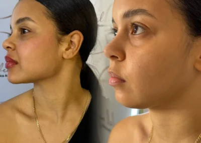 Mínimamente invasiva — inyección con microcánula o aguja fina de ácido hialurónico para volumen y perfilado.